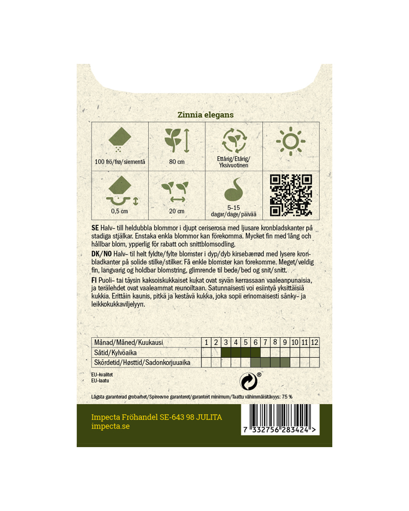 Halv- til heldoble blomster i dypt ceriserosa med lysere kronbladkanter på stødige stilker. Noen enkle blomster kan forekomme. Svært fin med lang og varig blomstring, ypperlig til blomsterbed og snittdyrking.Dyrking fra frø:Forkultiveres innendørs i såjord i mars–april. Dekkes med klar plast utstyrt med luftehull, eventuelt kan pottene luftes regelmessig. Settes i 20–25 °C, lyst og svalt etter spiring. Plantes ut etter herding når faren for frost er over. Kan også direktesås på friland når jorden er varm.