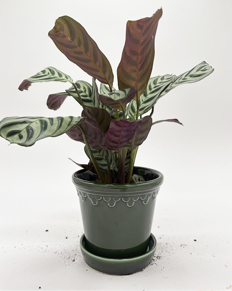 Ctenanthe burle-marxii er en dekorativ plante med elegante, sølvgrønne blader prydet med mørkegrønne striper. Denne grønne inneplanten er lettstelt og trives i indirekte lys med jevnt fuktig jord.