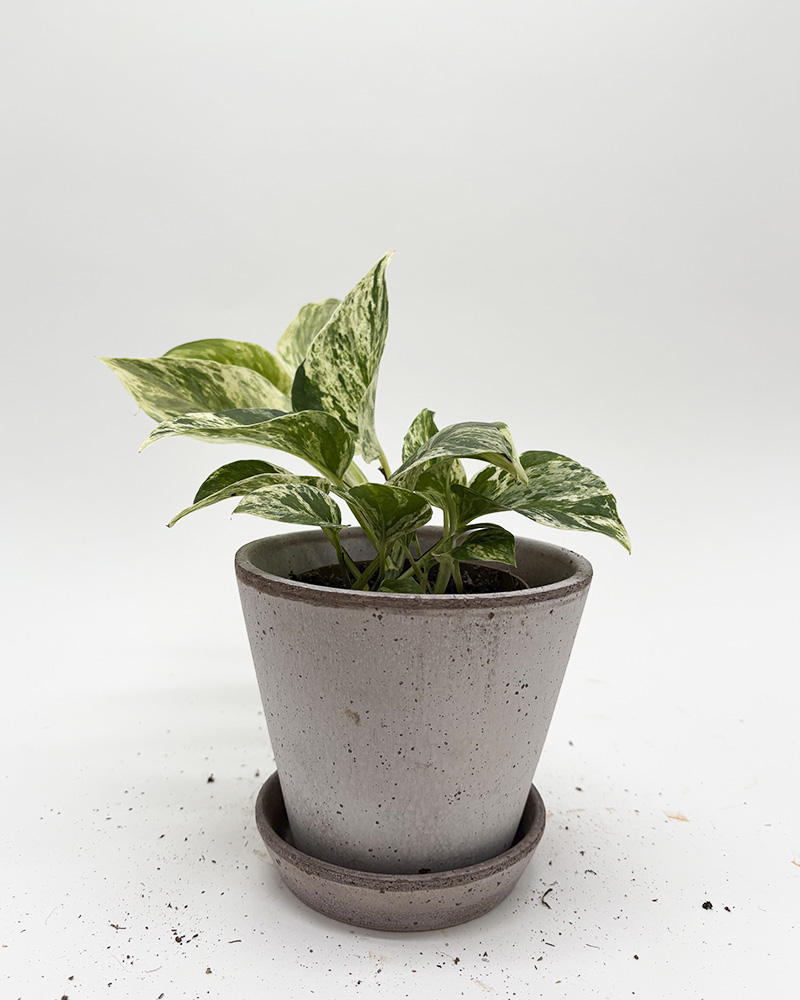 ‘Marble Queen' er en populær variant av gullranke med dekorative, marmorerte blader i grønne og kremhvite nyanser. Denne grønne inneplanten er lettstelt, trives i indirekte lys og tåler perioder med lite stell, noe som gjør den perfekt for både nybegynnere og erfarne planteelskere. Den passer godt i stue, kontor eller hengende potter og bidrar til et friskt og levende miljø.