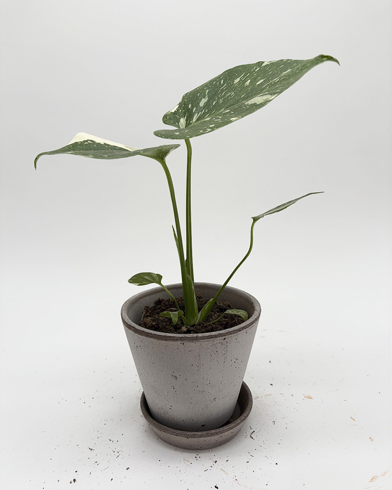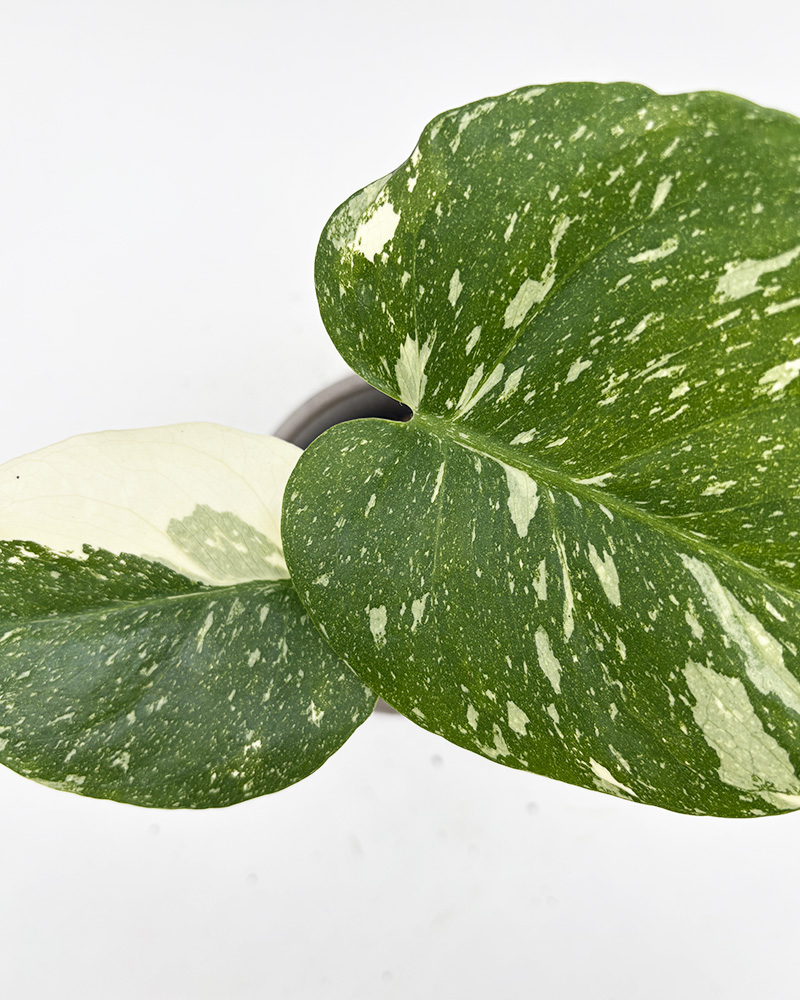 Monstera deliciosa 'Thai Constellation' er en dekorativ grønn inneplante med store blader prydet av kremhvite og grønne mønstre som gir et luksuriøst preg til hjemmet. Den er lettstelt og trives i lys uten direkte sol. Vann moderat og la jorden tørke lett mellom hver vanning.