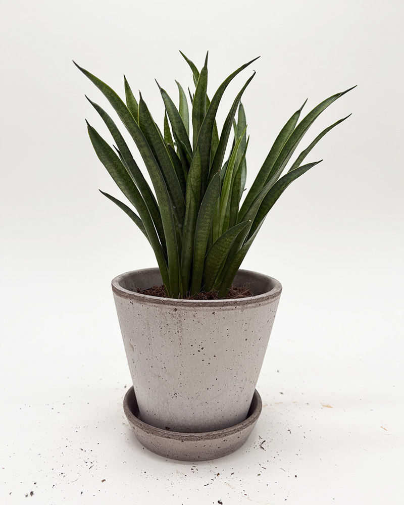Svigermors tunge er en stilren grønn inneplante med lange, dekorative blader som gir et moderne preg til hjemmet. Den er svært lettstelt og tåler både lite lys og uregelmessig vanning. La jorden tørke godt mellom hver vanning, og den vil holde seg frisk og vakker lenge. Perfekt for deg som ønsker en enkel, robust plante som krever minimalt stell.